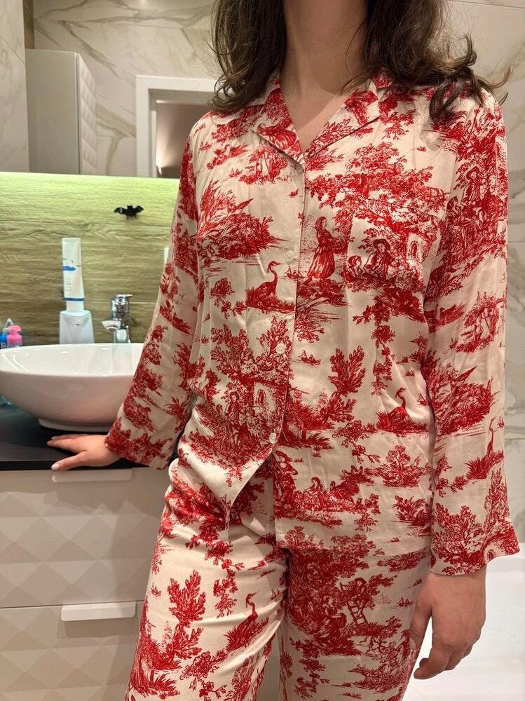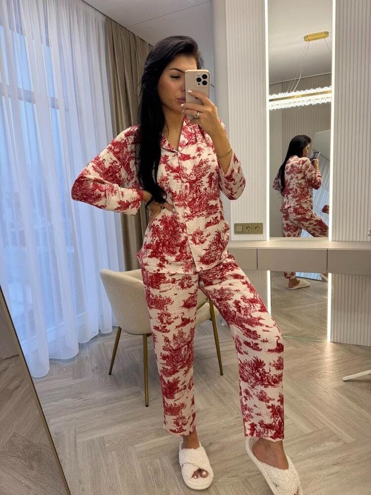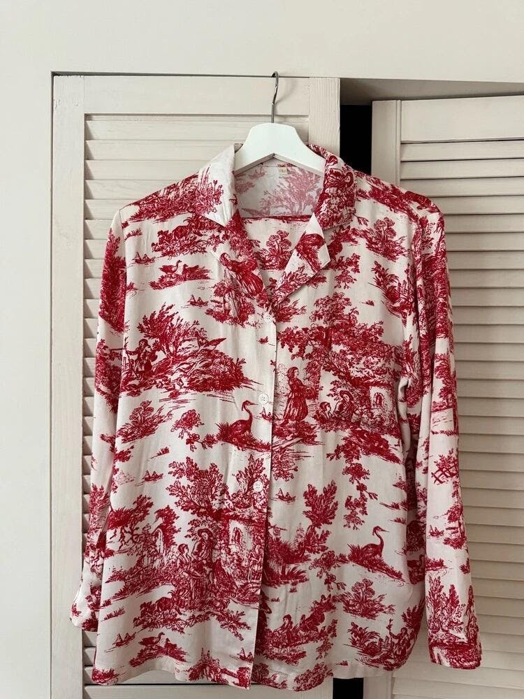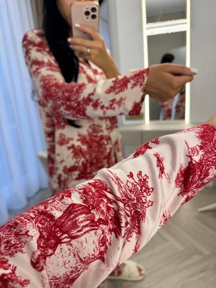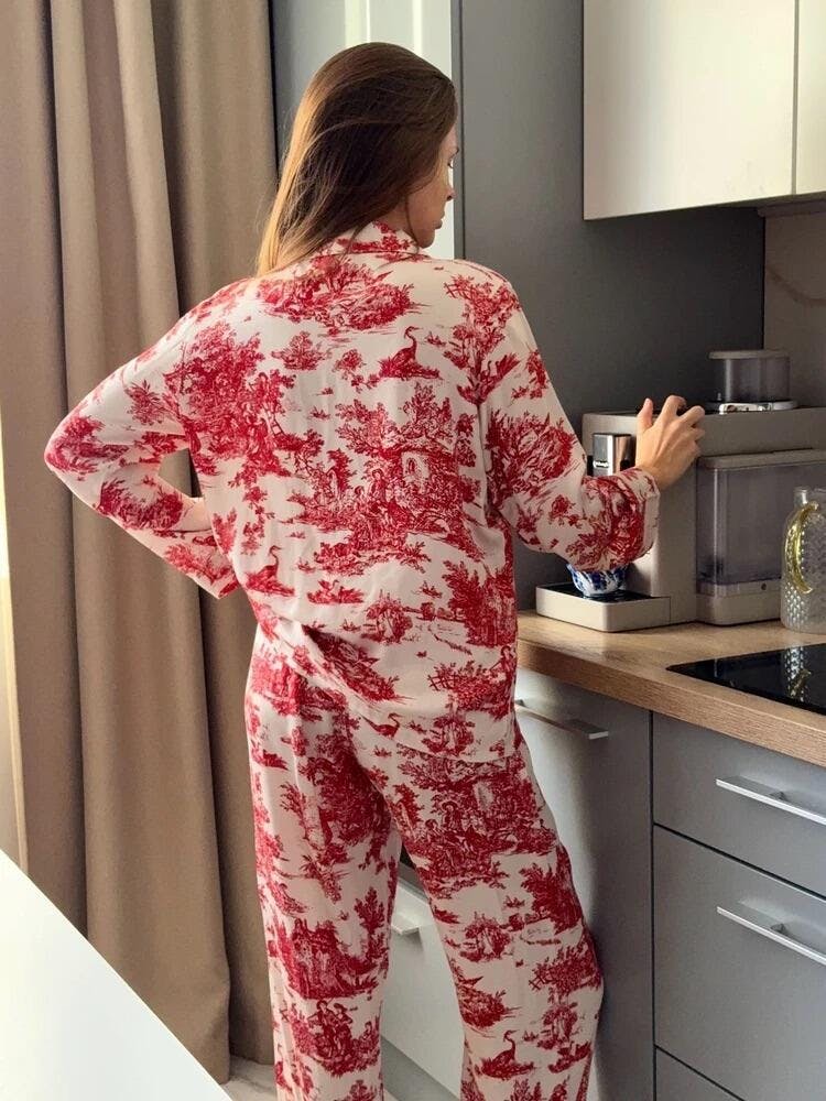 Elegant and festive, the Crimson Toile Pajama Set is crafted from 100% premium viscose for a silky-smooth, breathable feel. Featuring a rich crimson toile print on a soft ivory base, it delivers a timeless, European-inspired holiday look.