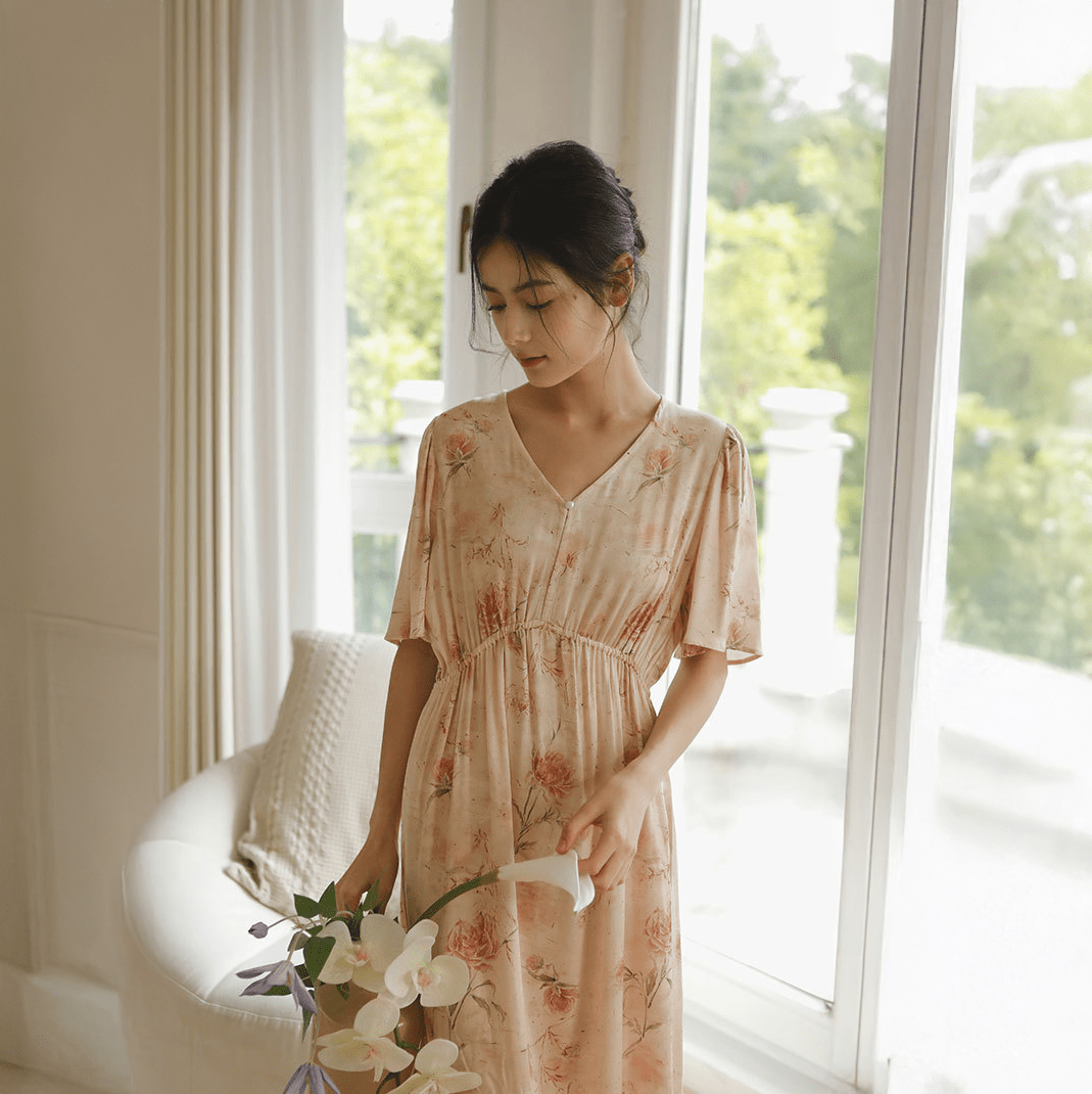The Fleur Soft Sleep Dress is crafted from 100% premium viscose — soft, breathable, and lightweight for all-day ease.