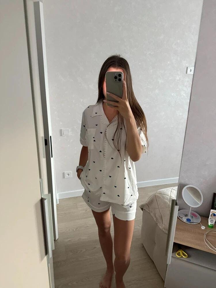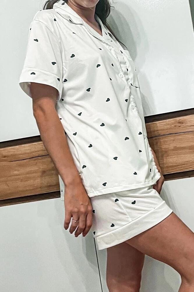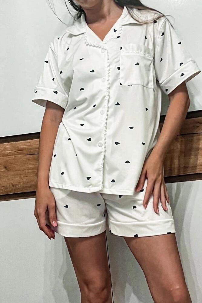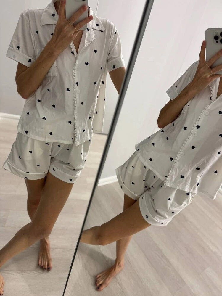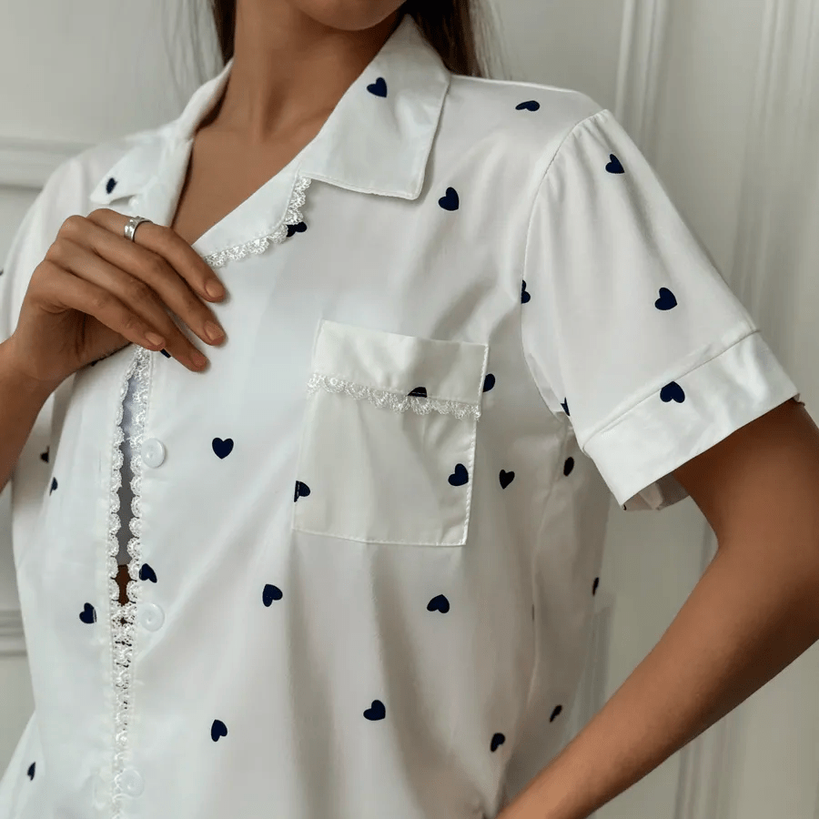 Crafted from a premium cotton–polyester blend, this set pairs natural breathability with a silky-smooth finish — wrapping you in cloud-soft comfort. The delicate heart print adds just the right hint of sweetness, perfect for slow mornings, cozy nights, and everything in between.