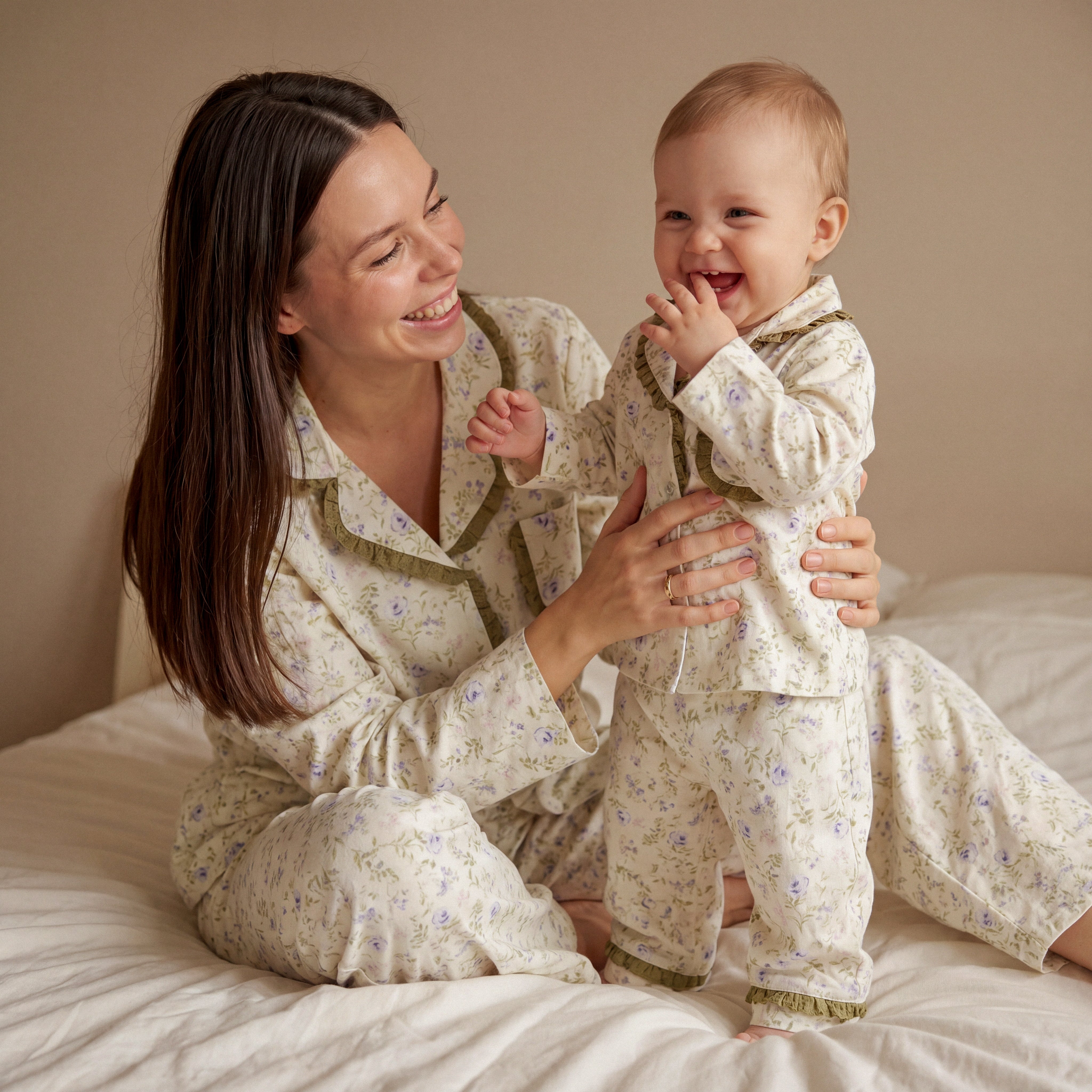 Crafted from breathable Organic Cotton, the Olive Bloom Pajama Set feels light, gentle, and effortless against your skin. Delicate florals and subtle olive trims create a look that’s fresh, refined, and easy to wear - from slow mornings to quiet evenings.