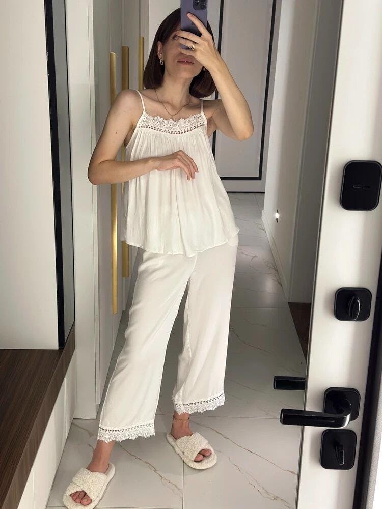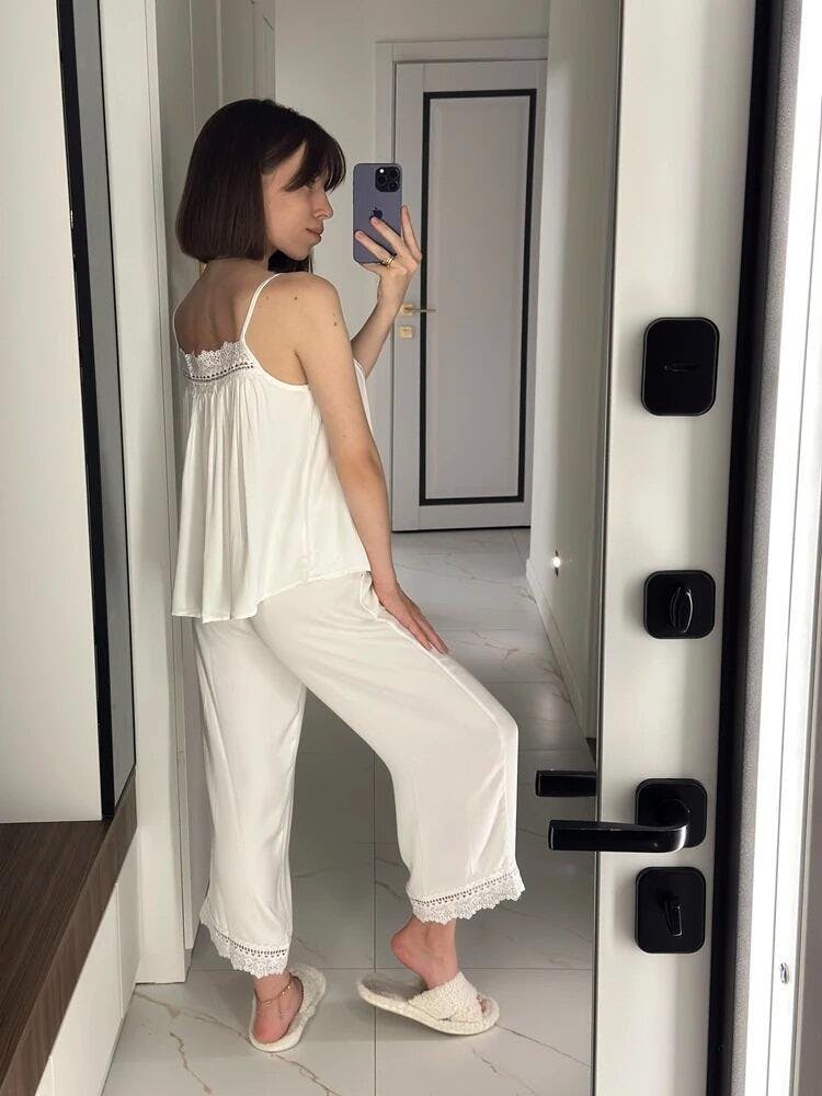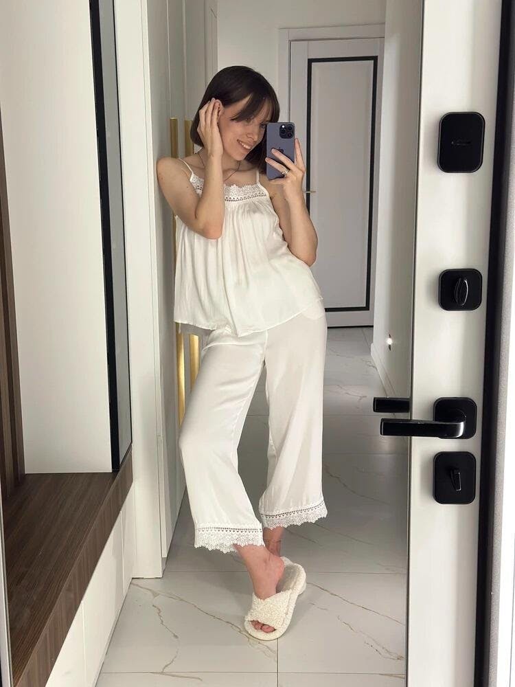 Delicate lace accents add a touch of femininity and sophistication, making it ideal for slow mornings, peaceful evenings, or moments of quiet indulgence. The minimalist yet refined design ensures you always feel as good as you look.