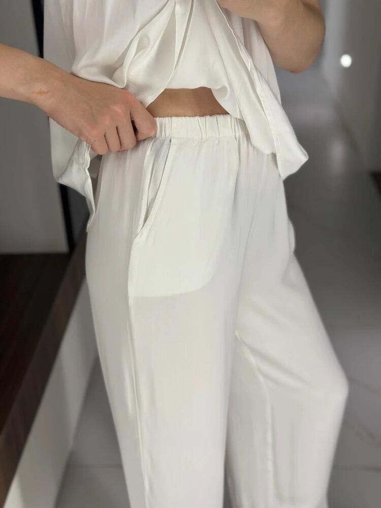 Indulge in effortless elegance with the Serenity Viscose Lounge Set—a perfect blend of luxury and comfort. Made from premium viscose with a silky-smooth feel, this set drapes beautifully over the body, offering breathability and a feather-light touch.