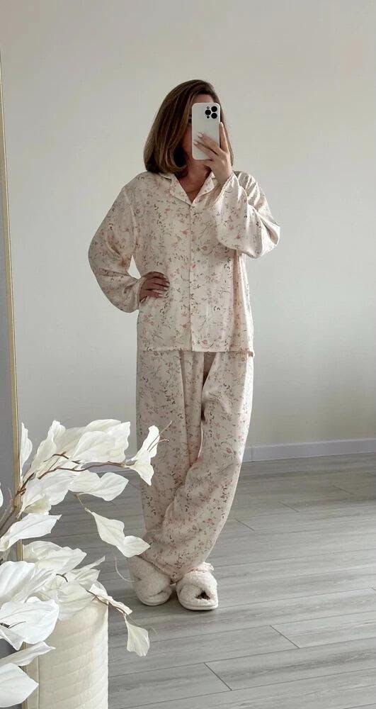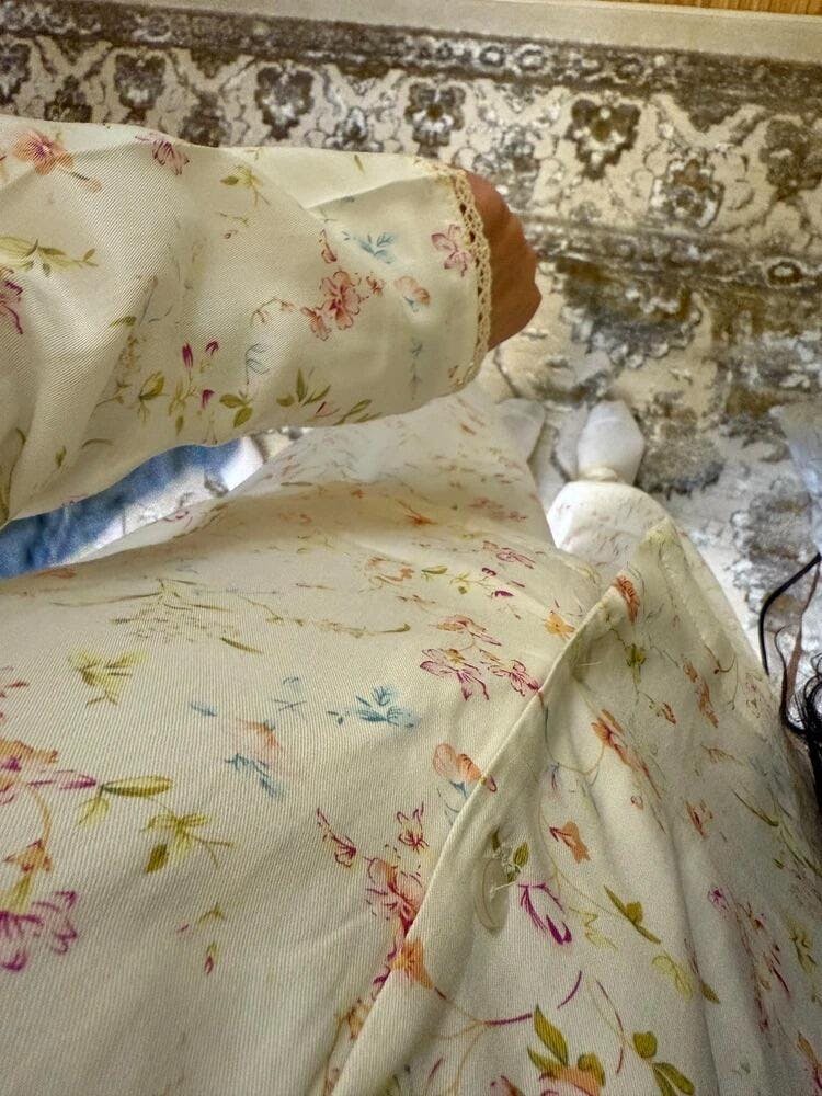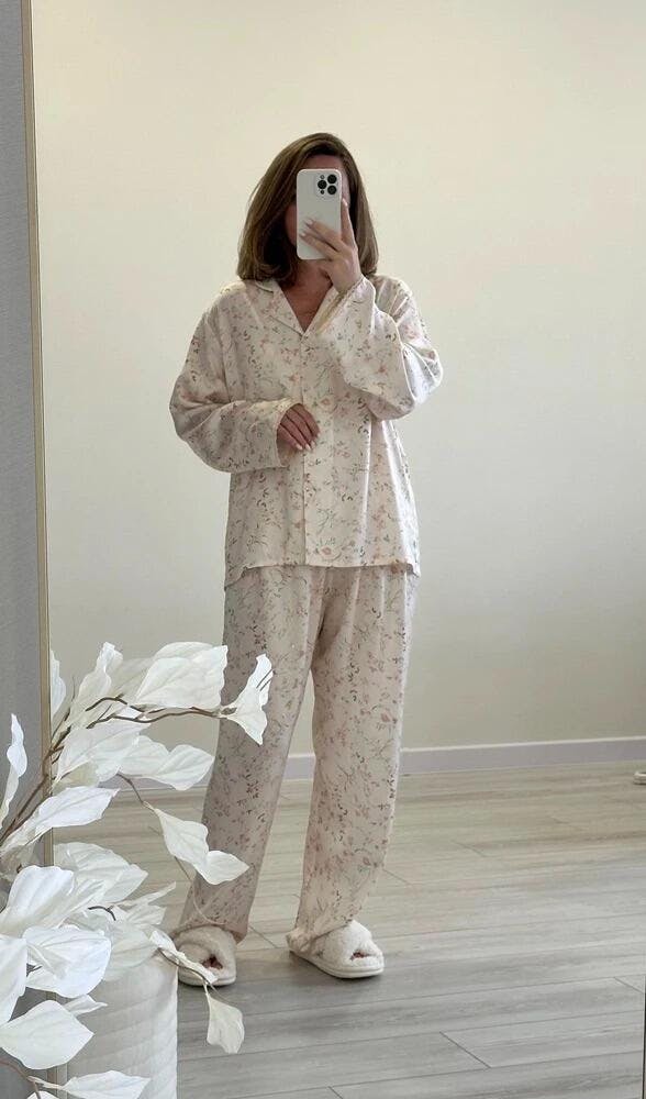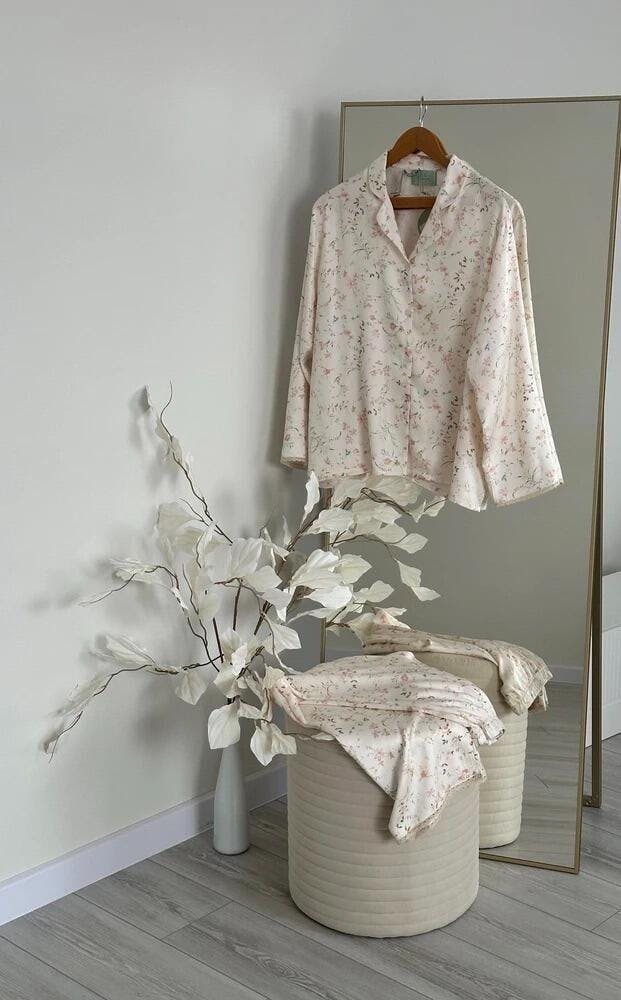 Crafted from 100% premium viscose, this set is silky-smooth, featherlight, and naturally breathable—perfect for cool, cozy nights and restful mornings. The delicate floral print, inspired by blooms under moonlight, adds a romantic, timeless charm.